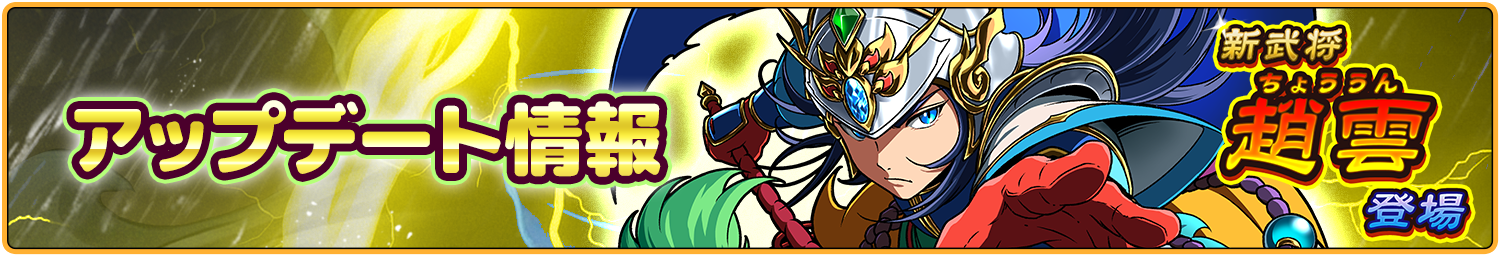 《趙雲》は、本ガチャの開催期間終了後、後日実施されるメンテナンスにてレギュラーガチャの出現ラインナップに追加予定です。